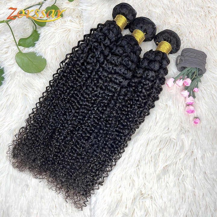 Human Hair Bundle, Brazil Raw kinky curly Remy Hair Machine Weft 3 bundles (12 14 16 Inch), 9A grade color natural black